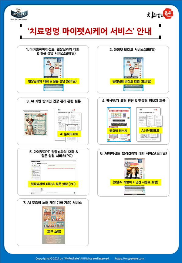 치료멍멍 마이펫AI케어 서비스의 7가지 맞춤형 메인 서비스