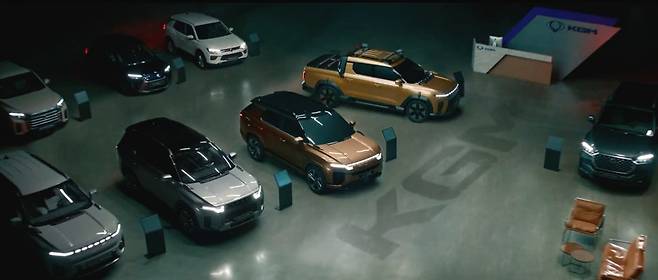 이때 당시 영상에서 공개된 차량은 코란도, 렉스턴, 토레스, 토레스 EVX 등 KGM(KG 모빌리티)를 대표하는 주요 라인업과 향후 출시를 예고했던 신차들도 포함되어 있었는데 '토레스 EVX'를 기반으로 만들어진 전기 픽업트럭(O100), '토레스'를 기반으로 만들어진 '쿠페형 SUV' 토레스 쿠페(J120) 디자인이 해당 영상을 통해 노출되면서 많은 관심을 받기도 했습니다.