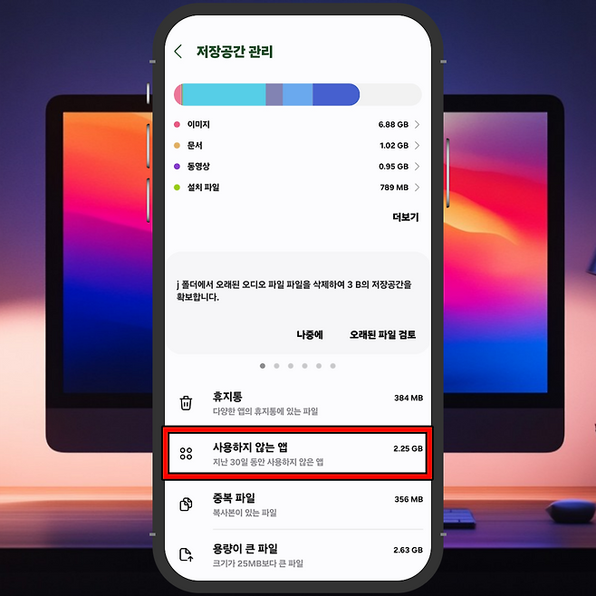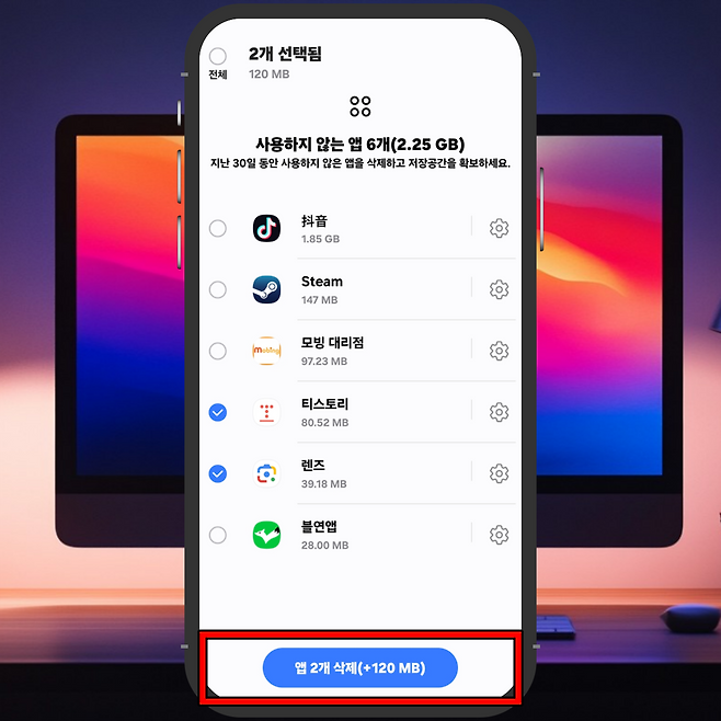 30일 이상 사용하지 않은 앱을 삭제하면 저장공간을 확보하고 스마트폰 속도를 높일 수 있습니다.
