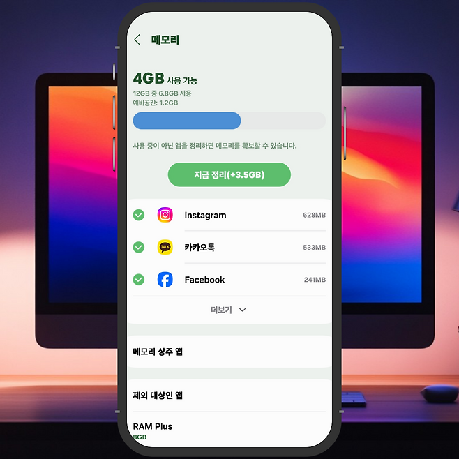 앱을 사용하지 않는다고 해도 일부 앱은 백그라운드에서 계속 실행되며 스마트폰의 메모리(RAM)를 점유합니다. 이렇게 되면 다른 앱 실행 속도가 느려지고, 배터리 소모량도 증가합니다.