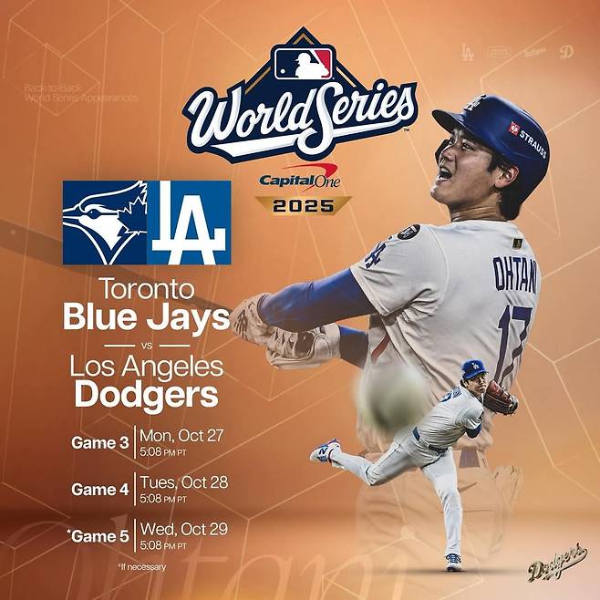 10월 26일(일) 09:00 LA 다저스 토론토 — 로저스센터 (Toronto)