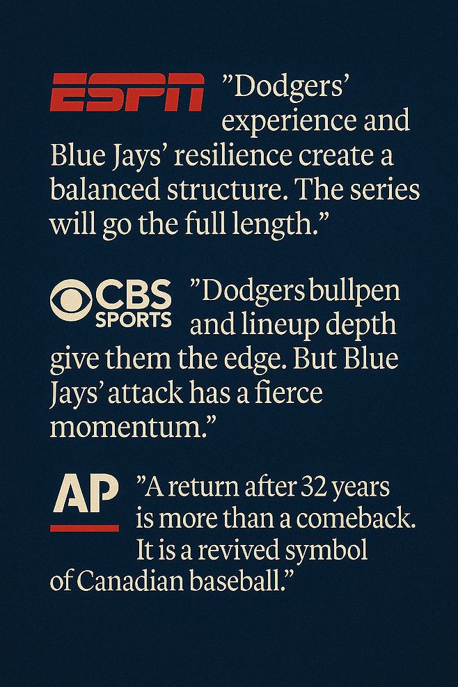 토론토는 기다림의 팀이다. 다저스는 완성의 팀이다. 한쪽은 다시 시작하려 하고, 다른 쪽은 끝까지 지키려 한다.