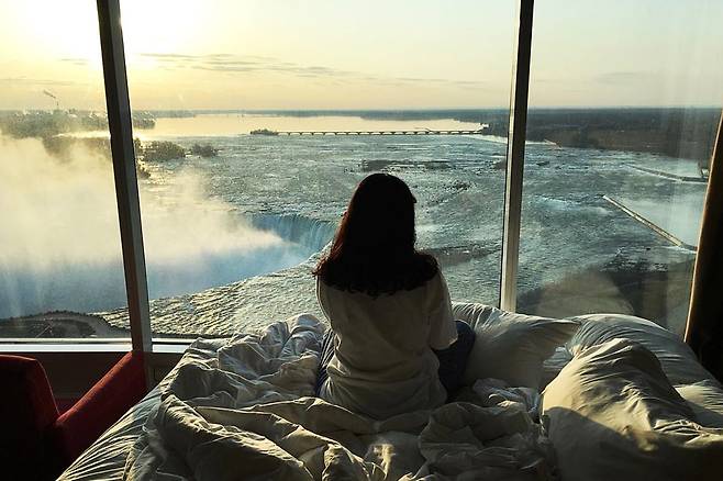 침대에 누워 웅장한 나이아가라 폭포를 보고 있자면 마치 꿈꾸는 듯한 기분이 들기도 하죠.