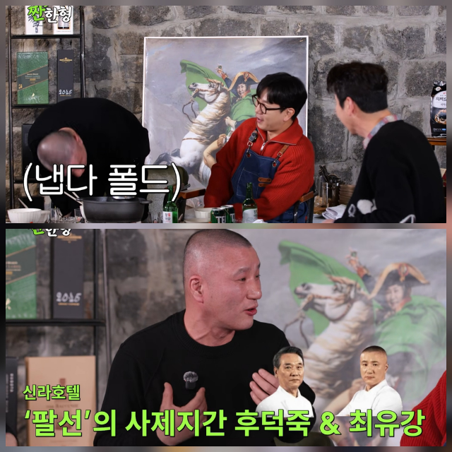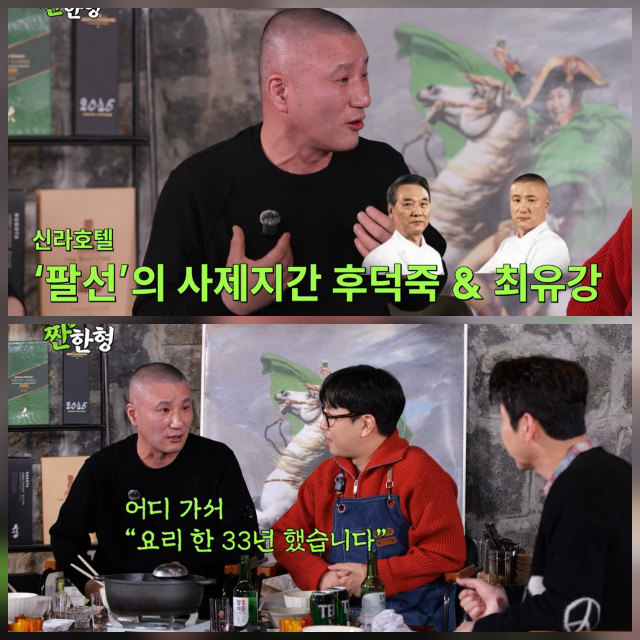 그러던 중 문이 열리며 등장한 인물은 신라호텔 ‘팔선’의 전설로 불리는 후덕죽 셰프. 최유강은 “문이 열리자마자 후덕죽 셰프님이 ‘안녕하세요’ 하고 들어오셨다”며 “그 순간 그대로 벌떡 일어나 90도로 인사했다”고 회상했다.