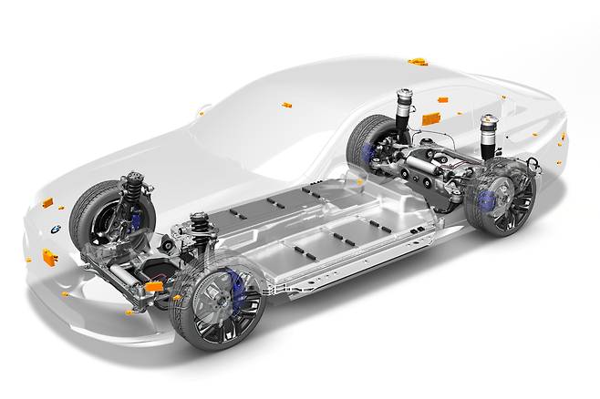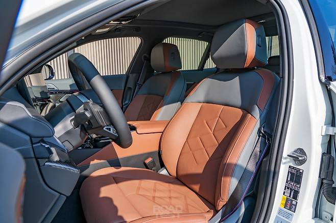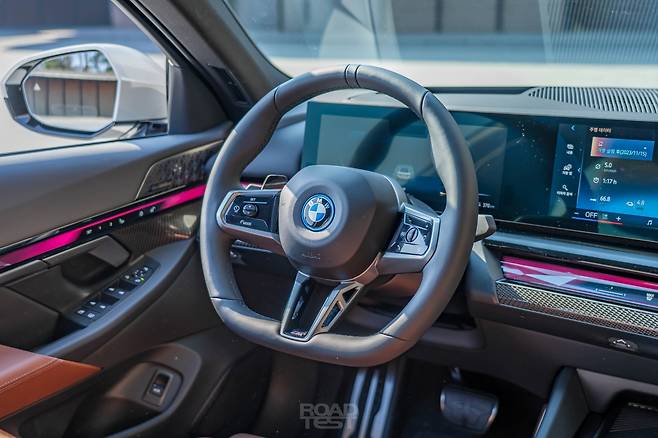 내연기관 5시리즈보다 약 350~410㎏ 묵직한 공차중량도 안정감을 더했다. 무게감 적당한 운전대까지 더하니 의심할 여지 없는 BMW다. E-세그먼트 세단답게 조향 감각이 아주 날카롭진 않다. 대신 정직하고 명확하다. 시선과 운전대 각도, 차의 진행 방향이 곧장 맞아떨어진다. 시트 포지션도 생각보다 괜찮았다. 개발 초기 단계부터 두 가지 파워트레인 탑재를 고려해 배터리를 최대한 얇게 만들었기 때문이다. 바닥이 한껏 올라온 제네시스 G80 전기차와 비교하면 확 와닿는다.