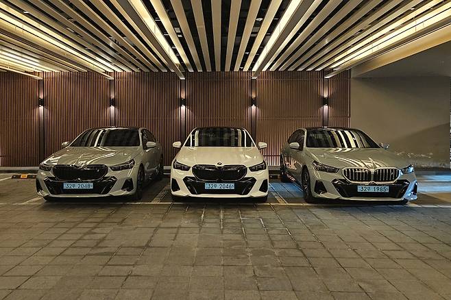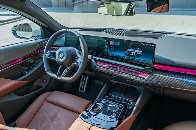 지하로 내려가자 충전을 마친 i5가 우리를 반겼다. 시승차 트림은 i5 eDrive40. 뒤 차축에 최고출력 340마력, 최대토크 40.8㎏·m를 내는 전기 모터 1개를 얹었다. 0→시속 100㎞ 가속 시간은 정확히 6초. 최고속도는 시속 193㎞다. 리튬이온 배터리 용량은 i5 M60과 같은 81.2㎾h로 삼성 SDI가 납품한다. 주행거리는 복합, 도심, 고속 각각 384, 392, 375㎞다.