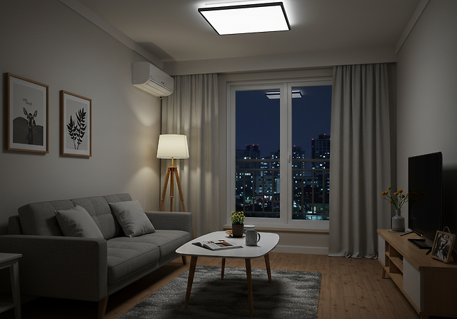 퇴근 후에도 형광등 불빛이 환하게 켜진 거실.