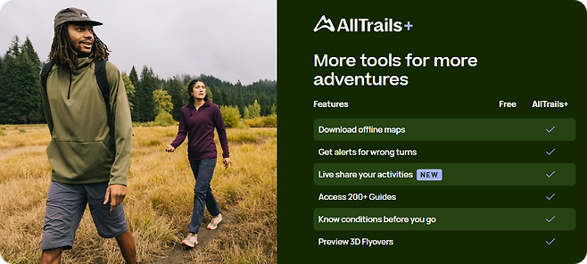 장점 : 전 세계 하이킹 코스 제공