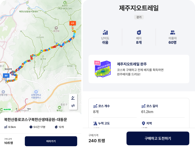 모바일 앱 뿐만 아니라 PC 홈페이지에서도 동일한 기능을 사용할 수 있어 사용자 편의성이 높다. 사용자가 코스에 대한 평점을 남길 수 있어 실제 등반한 사람의 생성한 후기를 확인할 수 있는 점도 좋다. 예를 들어, 한라산 관음사 탐방로 코스의 경우 179개의 후기와 1천 장 이상의 사진이 등록되어 있다.