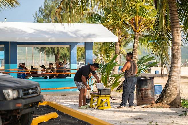 산호세(San Jose) 빌리지 근처 부두는 해 질 무렵에도 분주했다. 일과를 마친 사람들이 삼삼오오 모여 하루를 털어 내고 있었다. 테이블 위에는 그날 잡은 청새치 한 접시와 캔맥주가 빠지지 않았다. 매일매일 크게 다를 게 없는 섬 사람들의 일상. 그래서 원주민들의 눈에는 이주민이 반갑다. "헤이, 미스터 윤, 밥 먹고 가!" 낯선 여행자는 더 반갑다. 마치 알고 지냈던 사람처럼 우리에게도 자연스럽게 캔맥주를 내어준다. 내 이름은 디, 얘 이름은 제시야. 오늘은 애나의 생일이고…. 누구는 최근 새 차를 뽑았고, 누구는 얼마 전에 많이 아팠는데, 누구는 어디에 다녀왔다며, 크게 상관없고, 크게 궁금하지 않고, 크게 뜬금없는 이야기가 마치 크게 중요한 이야기처럼 여행자에게까지 돌고 돈다. 좁은 티니안 바닥에 옆집 밥숟가락 개수만큼이나 시시콜콜한 TMI가 넘치는 저녁. 푸근하고 생경해서 좋다.