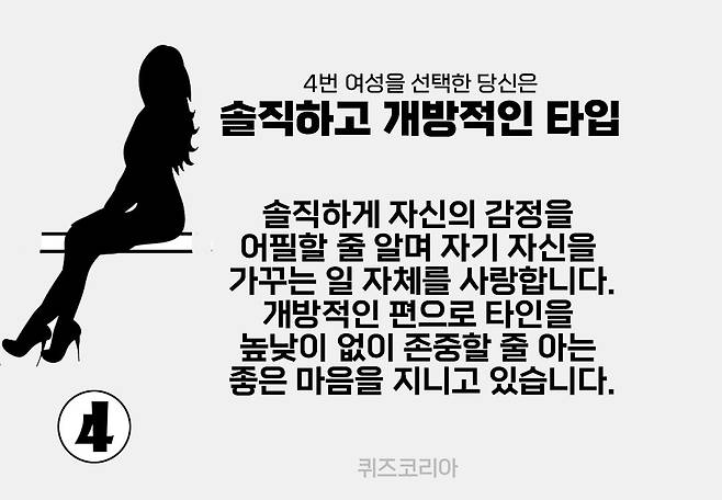 가장 자신감 있어 보이는 여성을 선택하면 내가 인간관계에서 어떤 성격 유형인지 알 수 있는 심리테스트.