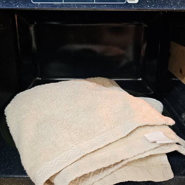수건을 깨끗하게 빨아 물기를 꽉 짜낸 뒤, 살짝 축축한 상태로 전자레인지에 1분만 돌려보세요.