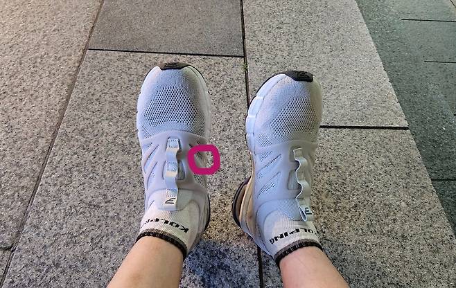 왼쪽 신발에 문제가 생기고 말았습니다.