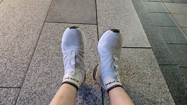 얼마 전 하남 미사역에서 분당 정자역까지 대략 27KM 걸었을 때 같은회사 다른 신발이었습니다.