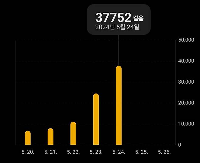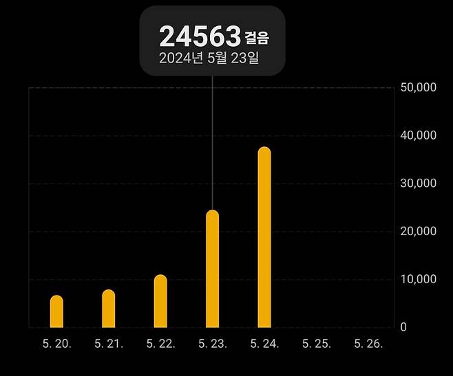 23일 자정부터 24일 자정까지의 걸음 수 입니다.