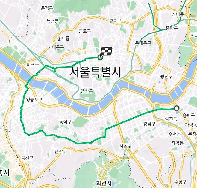 그러던 중 지하철 2호선(48.8KM)을 한 바퀴 도는 것도 재밌겠다 싶어서 검색해보니