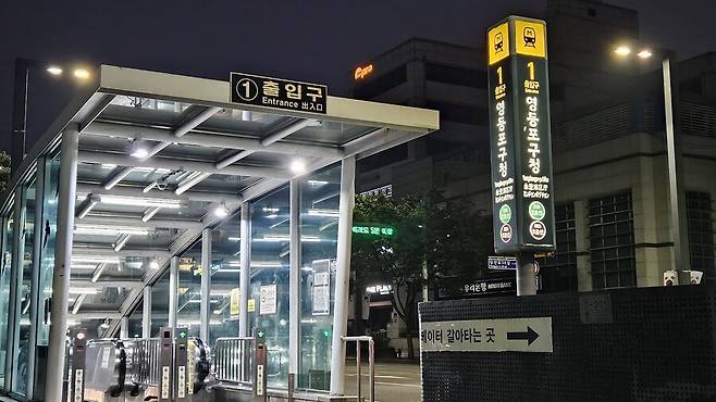 여기서 문래역으로 걸어가기에 가장 적합한 루트는 역 안으로 내려가서 1번출구로 나와