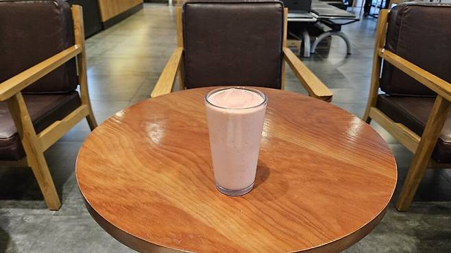 딸기요거트 스무디 하나 주문하고 앉아있는데
