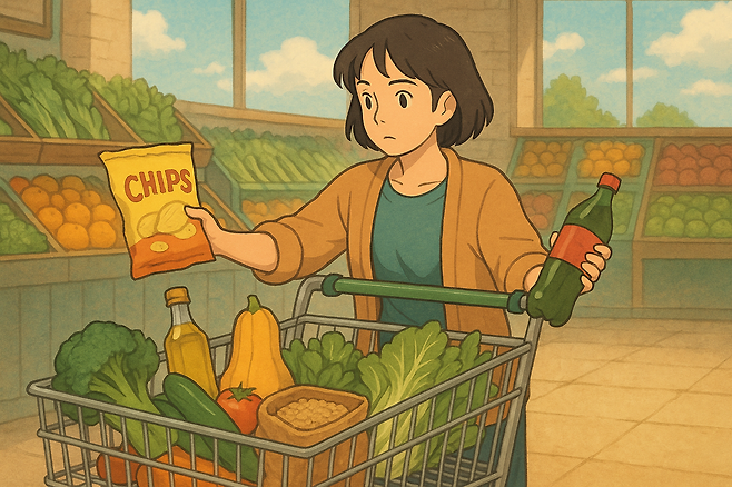 간편해서, 맛있어서 매일같이 집어 들었던 과자·냉동식품·탄산음료.