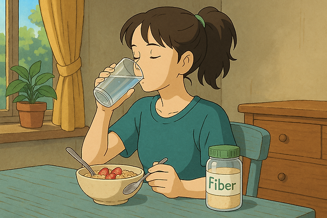 • 식이섬유(통귀리·치아씨) 25 g, 물 2 L 이상