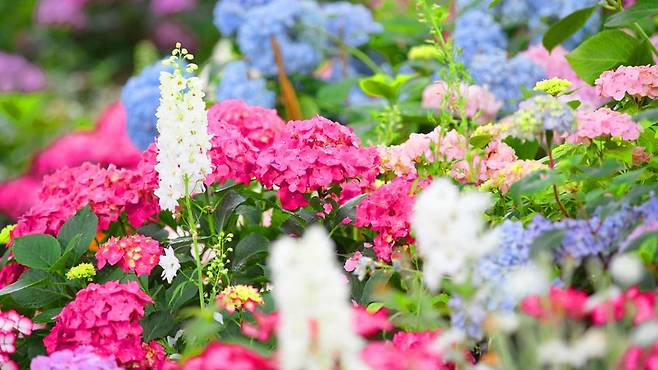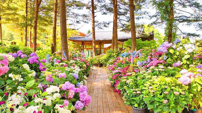 ‘시가 있는 산책로’와 ‘아침마루’ 일대를 중심으로 펼쳐진 수국길은 마치 유럽의 한 고성 정원을 거니는 듯한 분위기를 자아낸다.