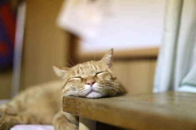두 발로 직립 보행하는 인간은 척추와 목에 머리가 있지만 네 발로 걷는 고양이는 척추가 옆으로 뻗고 그 앞에 머리가 있는 구조입니다. 가로 방향의 척추에서 머리가 지탱되는 형태라서 인간으로 치면 어깨 결림처럼 피로감을 느낄 수 있습니다. 턱을 어딘가에 괴면 몸의 부담이 그만큼 줄기 때문에 편안한 자세가 되는 것이죠.