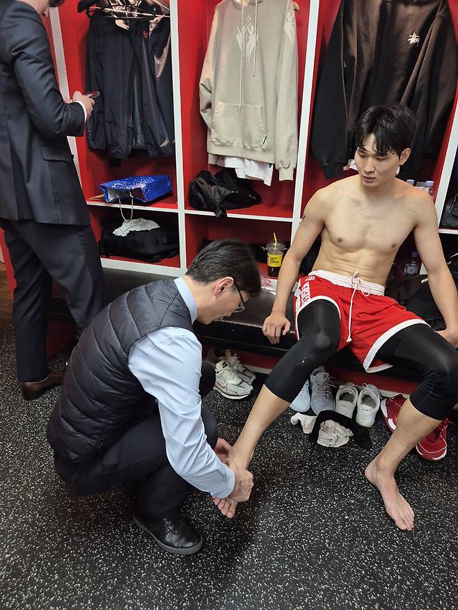 김진수 원장과 동행 취재를 한 2월 6일 수원 KT와의 경기에서는 다행히 선수들의 부상이 나오지는 않았다.