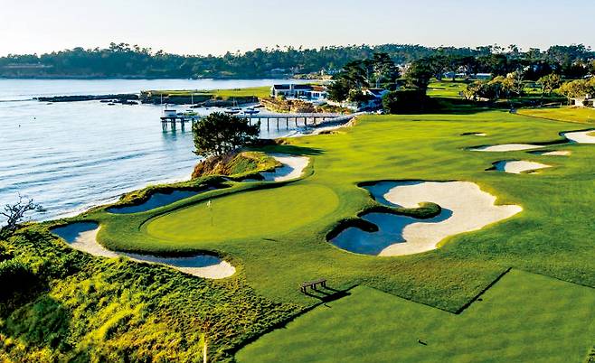 그럼에도 이곳에서 골프를 치겠다는 사람이 줄을 잇는다. 페블비치엔 링크스를 비롯해 스파이글래스힐, 더링크스앳스패니시베이 등 4개 코스가 있는데 이 가운데 단연 링크스 코스가 인기다. 태평양 바다를 낀 링크스 코스는 바다와 절벽의 절경이 어우러져 최고의 풍광을 빚어낸다. 특히 파3 7번홀은 거리가 100야드 남짓으로, ‘세계에서 가장 아름답고 짧은 파3홀’이란 수식어가 붙어 있다.