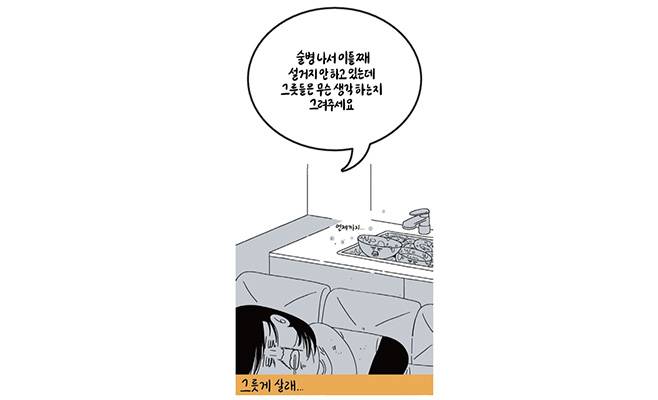 일주일에 댓글은 수천 개, 사연은 수백 개예요. 하나도 빼놓지 않고 전부 다 읽어요. 많이 볼수록 좋은 그림이 나온다고 생각해서요. 독서를 안 하게 된 이유죠(웃음). 댓글이나 사연은 모두 파일로 만들어놔요. 예전 글들도 나중에 다시 보기도 하고요. 그럼 당시엔 떠오르지 않았던 아이디어가 생각나기도 해요. 그럴 때 아드레날린 폭발입니다.
