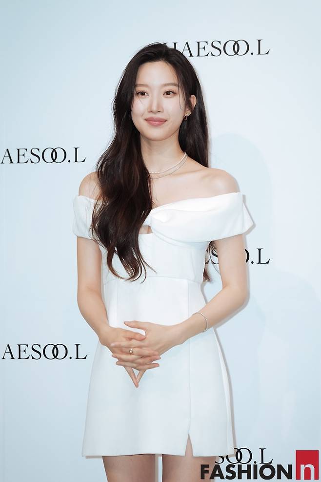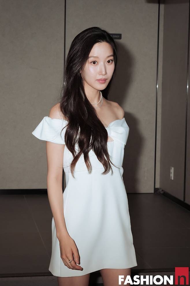 이날 문가영은 리본 디테일이 돋보이는 리틀 화이트 원피스룩으로 청초하면서도 러블리한 스타일을 선보였다.