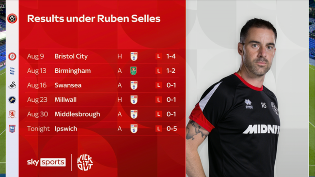 셰필드는 셀례스 감독 체제에서 카라바오컵을 포함해 공식전 6경기를 치렀지만, 단 한 번도 이기지 못했다. 카라바오컵에서도 버밍엄에 1-2로 패하며 1라운드 탈락했다.