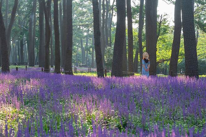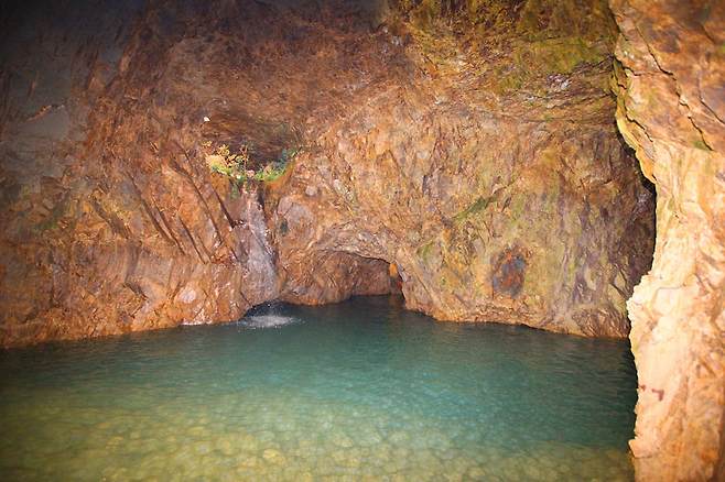 여름에 피어나는 주황빛 나리꽃, 보랏빛 맥문동이 피어나 신비로운 풍경을 선사하고 동굴 속 호수에서 무더위를 이겨낼 수 있습니다.