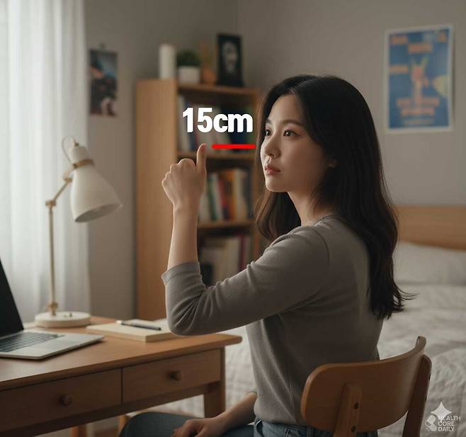 - 엄지를 눈앞 15cm 전방에 둔다.