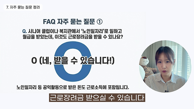 시니어클럽이나 복지관 등에서 ‘노인 일자리’로 일하고 받은 급여도 근로소득에 해당해 장려금을 받을 수 있습니다. 자영업자나 프리랜서 등 사업 소득이 있는 분들은 3월이 아닌 5월 정기 신청 기간에 신청해야 합니다.