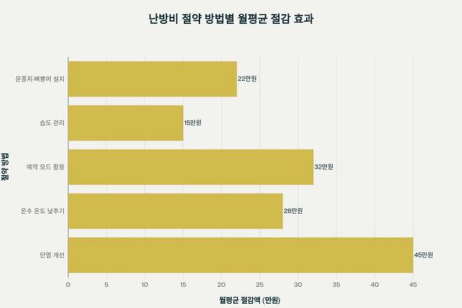 창문 프레임 사이의 작은 틈새나 현관문의 아래쪽 틈을 꼼꼼히 점검해 단열재로 채우는 것은 한 시간 정도면 충분히 완료할 수 있는 작업이다. 이런 간단한 조치들이 모이면 월 난방비에서 상당한 절감 효과를 만들어낸다.