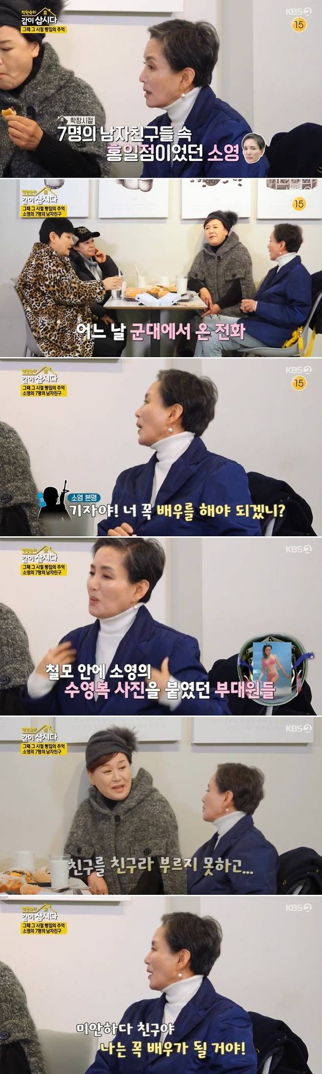 이어 안소영은 "얘네들이 군대에 가서 전화가 왔다. '꼭 배우를 해야되겠니?' 라더라"며 "장병들이 철모 안에다가 내 수영복 사진을 넣어놨는데, 창피해서 친구라고 못하겠다더라"라고 그 이유를 밝혔다.