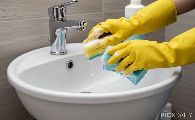거울 청소가 끝나면 본격적으로 청소를 시작한다. 세면대와 수전은 스펀지로 닦아낸 뒤, 벽, 샤워기 헤드, 변기 뚜껑, 줄눈으로 위에서 바닥으로 점차 내려오면서 청소해준다. 줄눈 사이는 칫솔이나 전용 솔로 문질러주면 빠르게 청소를 마칠 수 있다. 바닥은 수세미나 청소포를 이용해 문질러 닦아주자. 이후 남은 세제 물은 변기 안쪽에 부워준뒤, 변기솔로 꼼꼼히 문질러주면 된다.