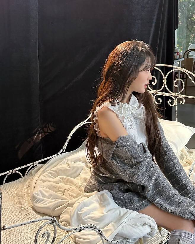 침대 위에서의 장원영의
