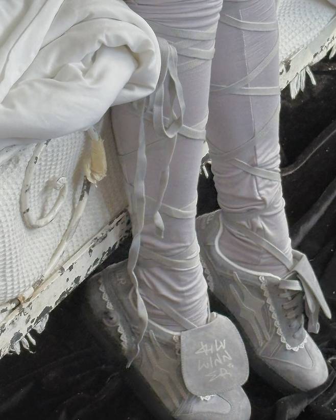 리본 디테일의 레그웨어를 믹스한