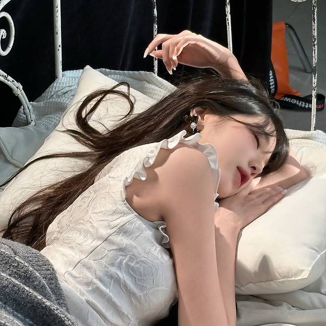 침대 위에서의 장원영의