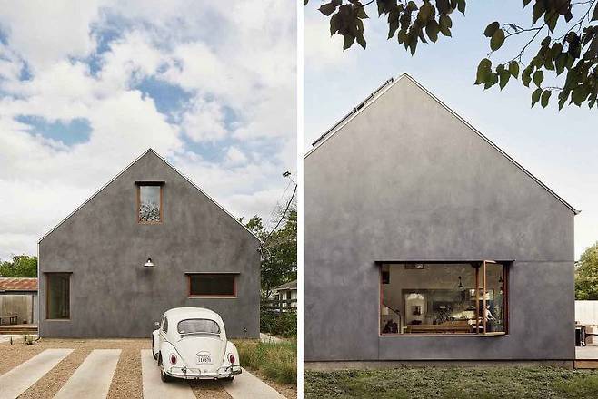 국내 주택에서 이런 식으로 콘크리트를 사용한 주택이 있을까 싶다. 이 텍사스 이스트 오스틴, 교외에 위치한 집은 사실 오래된 목조 창고였다. 이 창고에 콘크리트로 강화하고 스타코로 마감하는 리노베이션을 통해 지금의 집을 완성했다.