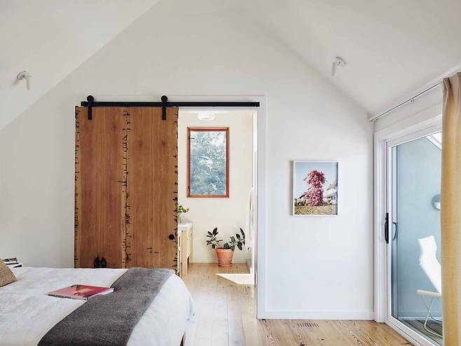 단연 돋보이는 부분은 무릎 높이에서 시작하는 단 하나의 창이다. 심플하면서 집 동쪽 벽과 높이, 크기 등에서 완벽한 밸런스를 맞추고 있다. 너무 크지도 않고, 너무 낮지도 않은 위치에서 충분한 개방성까지 모든 요소를 완벽하게 소화한다.