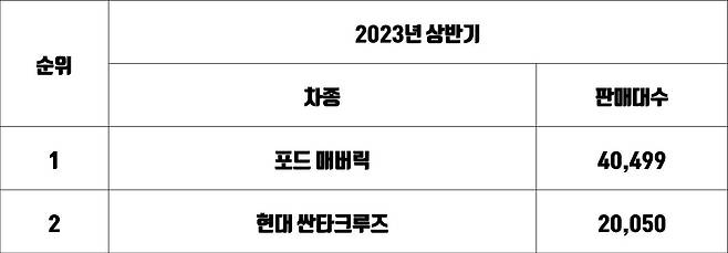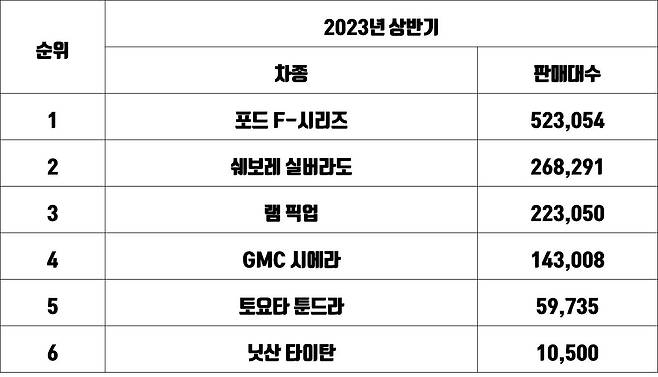 <표1. 풀사이즈 대형 픽업트럭 판매순위>