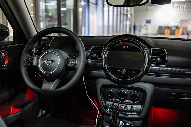 실내는 더 커진 뒷좌석을 제외하면 일반 미니 해치백과 같습니다. 버튼이 아닌 스위치로 각종 기능을 조작할 수 있도록 해놨고, 가운데에는 원형으로 된 인포테인먼트 시스템이 있습니다. 이 원형의 모양은 옛날 미니에서 이 부분에 계기판이 있었던 것을 오마주한 것이죠. 다만 디스플레이 자체는 사각이라 위아래로 큰 베젤이 있습니다. 이런 면에서는 이 원 전체를 OLED 화면으로 채운 신형 미니가 좀 더 공간을 잘 활용했다는 느낌이 듭니다. 하지만 스위치로 시동을 거는 느낌, 그리고 스위치들을 딸깍딸깍 눌러주는 느낌은 언제나 참 좋더군요.