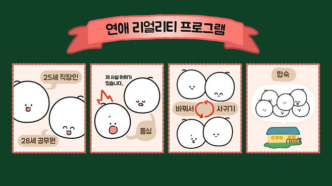 그런데 연애 프로그램도 포맷이 정말 다양합니다. 일반인이나 돌싱들이 나와서 짝을 찾기도 하고, 이별을 고민 중인 커플들이 나와서 짝을 바꿔 데이트해보거나 이별한 커플들이 한 집에 모여 지내는 등 각양각색입니다.