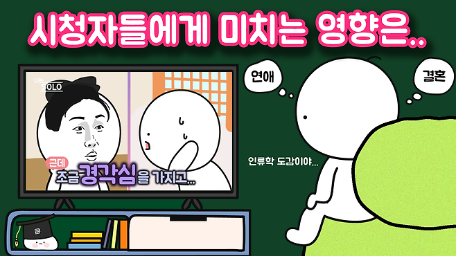 너무 잘 대변해주는 덕분에 연애와 결혼의 어려움도 알 수 있는 건데, 일단 해외에서는 연애 리얼리티 프로그램 시청이 연애와 결혼에 대한 신념에 긍정적인 영향을 준다는 논문 자료가 많습니다.