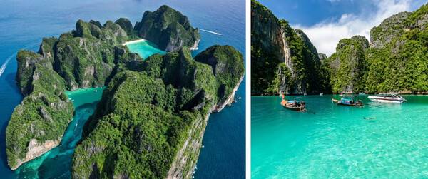푸켓 섬에서 약 50km 떨어진 지점에는 피피섬이라는 낙도가 있는데요. 페리로 약 1시간 거리에 있는 이곳은 레오나르도 디카프리오가 주연으로 나오는 '더 비치'의 무대가 된 장소이기도 합니다.
