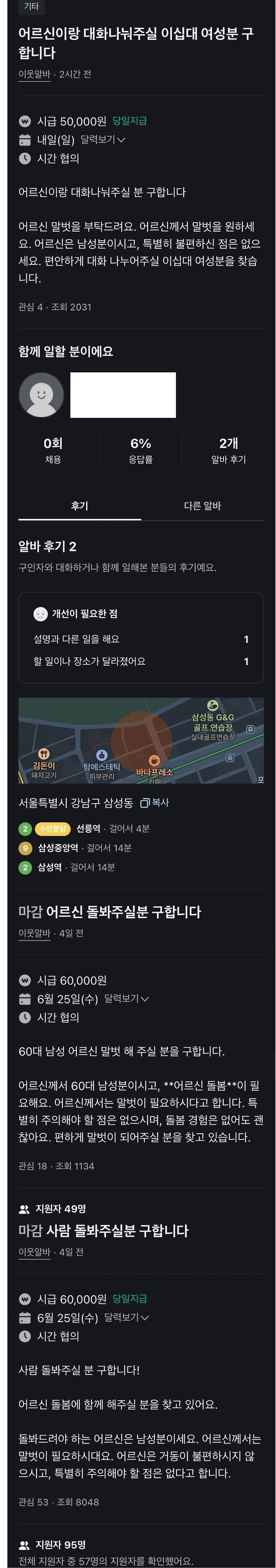 후기로는 설명과 다른 일을 하거나 할 일이나 장소가 달라졌다는 후기가 있음