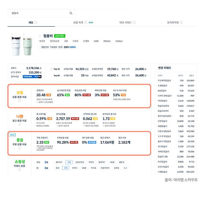 - 판다랭크, 아이템 스카우트와 같은 키워드 분석 서비스를 통해 경쟁 강도와 연관 키워드 등에 대한 정보 확인이 가능해요.