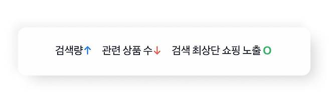 키워드 분석 결과를 바탕으로 제품을 소싱할 때 정답은 없어요. 베테랑 사장님은 50:1과 같이 일정 수준의 경쟁률을 기준선으로 삼는 등의 노하우를 가지고 있는데요. 쇼핑몰 규모, 판매 품목, 광고 예산에 따라 기준이 완전 달라질 수 있어요.